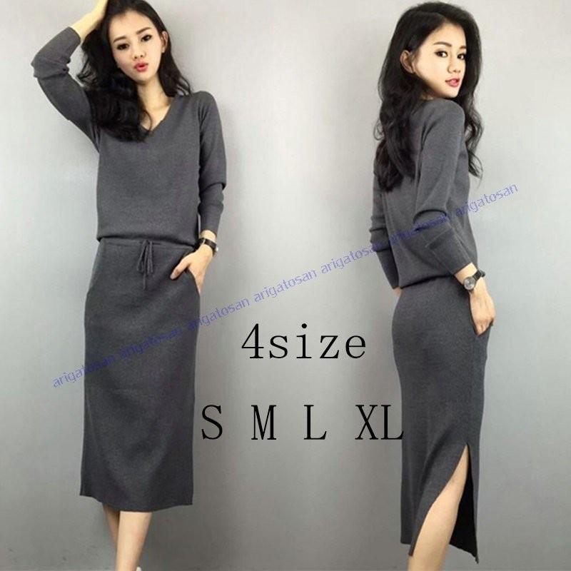 ワンピース レディース 黒ワンピース ミディアム丈 ワンピ タイト スリット ニットワンピース vネック 長袖 無地 着痩せ おしゃれ ワンピース 春 人気 1901cx008 こーちゃん 通販 Yahoo ショッピング